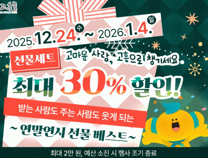 이번 기획전은 한 해를 마무리하며 감사의 마음을 전하고 새해 인사를 준비하는 소비자들을 위해 고흥 대표 농수산물 선물세트를 한자리에 모아 선보이는 연말 시즌 특화 행사다.