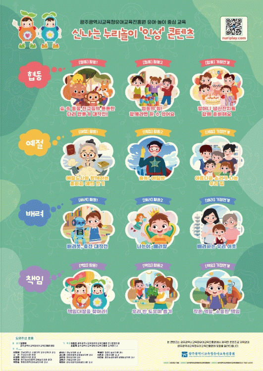 이번 콘텐츠는 유아기 필수 덕목인 인성 가치를 함양하고, 유치원과 가정의 교육 연계를 강화해 유아들의 전인적 성장을 돕고자 제작됐다.
