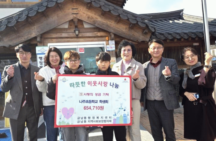 김화영 금남동장은 “어린 학생들이 지역의 이웃을 위해 나눔을 실천한 점이 매우 뜻깊다”며 “전달받은 후원금은 관내 어려운 이웃들을 위해 소중하게 사용하겠다”고 감사의 뜻을 표했다.