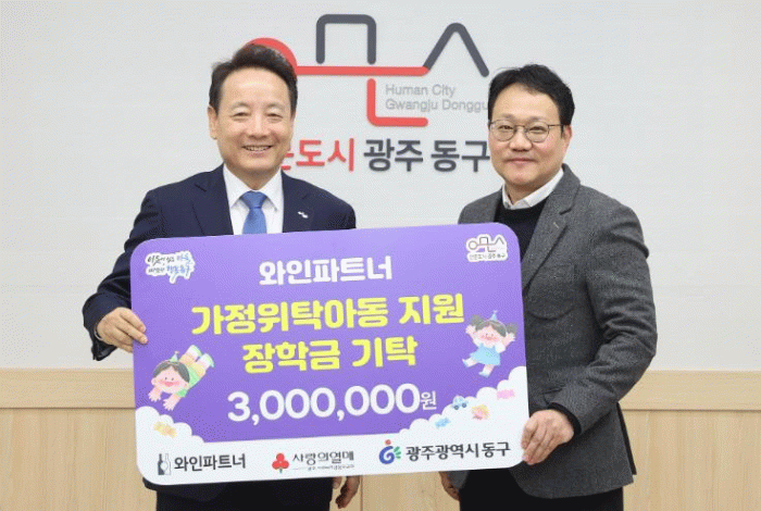 동구 관계자는 “와인파트너의 지속적인 기부는 아이들의 삶에 동행하고, 지역이 함께 책임지는 인문적 연대의 실천”이라면서 “앞으로도 가정위탁아동이 안전하고 존엄하게 성장할 수 있도록 촘촘한 지원체계를 마련해 나가겠다”고 말했다.