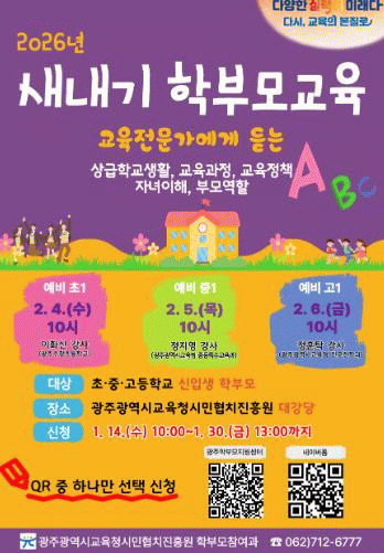 참여 신청은 오는 30일 오후 1시까지 광주시교육청 학부모지원센터 누리집(서 선착순으로 받는다.
