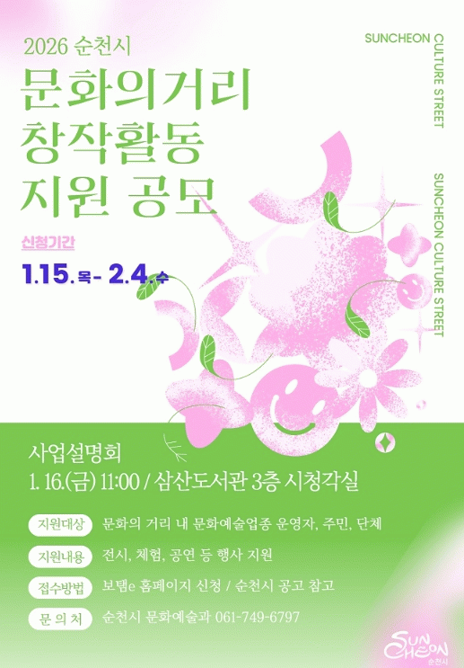 기타 자세한 사항은 순천시 홈페이지 공고문을 참고하거나 문화예술과 로 문의하면 된다.