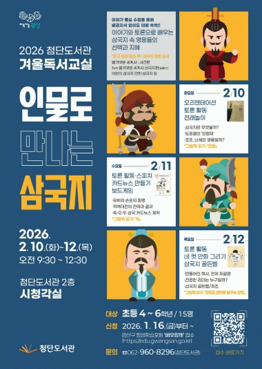 첨단도서관은 2월 10일부터 12일까지 3일간 ‘인물로 만나는 삼국지’ 프로그램을 운영한다.