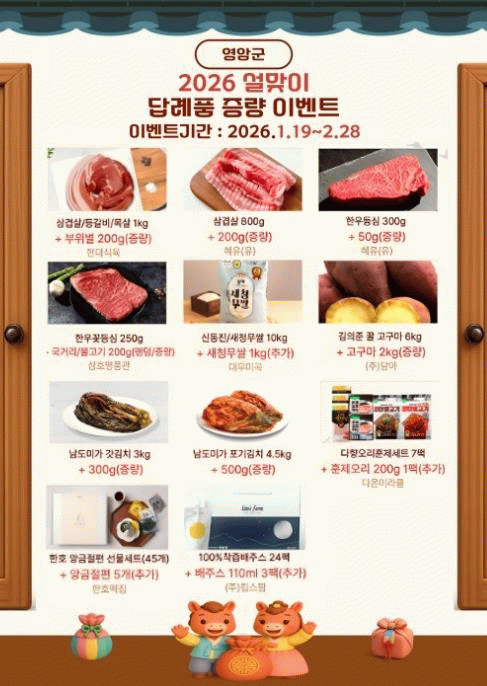 이영주 영암군 홍보전략실장은 “설을 맞아 고향사랑기부로 보내 준 정성에 푸짐한 답례품으로 보답하겠다. 많은 분들이 영암을 위해 기부하고, 영암의 따뜻한 정도 가져가길 바란다”고 말했다.