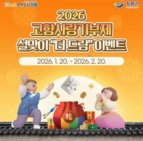 장흥군 관계자는 “설 명절을 맞아 고향을 응원하는 따뜻한 마음을 기부로 표현할 수 있도록 이번 이벤트를 마련했다”며 “앞으로도 고향사랑기부제가 지역 발전과 기부자 만족을 함께 높일 수 있도록 다양한 홍보와 혜택을 지속적으로 추진해 나가겠다”고 말했다.