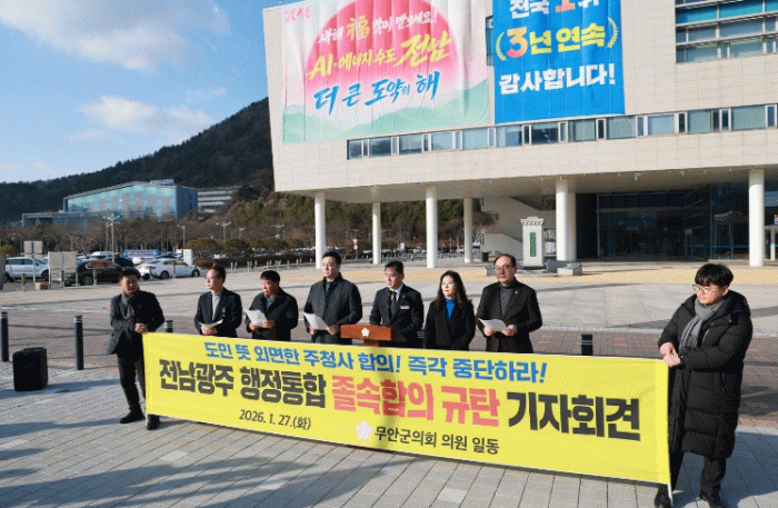 이호성 의장은 “지금 우리가 지키려는 것은 한 동의 청사가 아니라, 전남의 자존과 무안의 미래”라며 “무안에 위치한 전남도청을 명실상부한 주청사이자 의회의 자리로 세우기 전까지, 무안군의회는 흔들리지 않고 도민과 끝까지 함께 할 것”이라고 말했다.