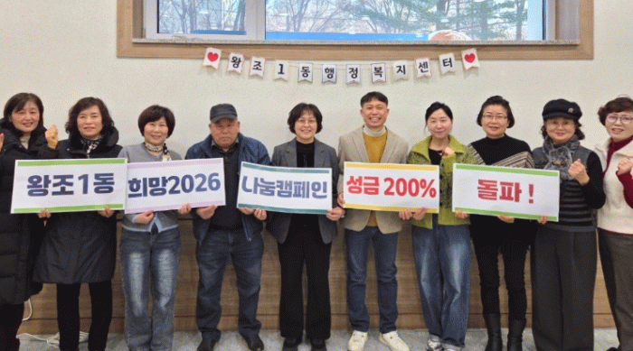신혜정 왕조1동장은 “많은 주민과 단체에서 한마음으로 나눔에 동참해 주신 덕분에 목표의 200%를 달성할 수 있었다”며 “앞으로도 촘촘한 복지 실현을 위해 나눔 문화 확산에 최선을 다하겠다”고 밝혔다.