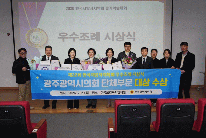 신수정 의장은 “이번 수상은 시민의 삶의 질 향상과 사회적 문제 해결을 목표로 한 광주광역시의회의 자치입법 노력이 대외적으로 인정받은 뜻깊은 성과”라며, “앞으로도 현장의 목소리를 반영한 실효성 있는 조례 제정과 제도 개선을 통해 지방자치 발전에 선도적인 역할을 해 나가겠다”고 밝혔다.