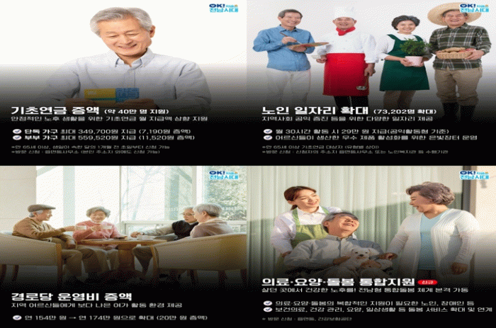 이현숙 전남도 노인복지과장은 “어르신이 살던 곳에서 안전하고 활기찬 노후를 보내도록 어르신 맞춤형 정책을 지속해서 추진하겠다”고 강조했다.