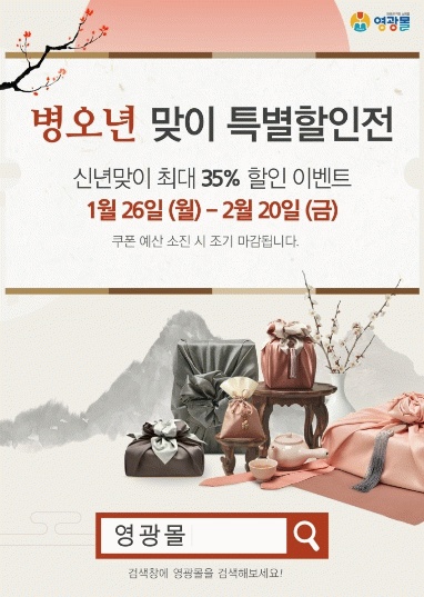 이번 할인전은 병오년 설 명절을 기념해 마련된 특별 기획 행사로, 오는 2월 20일까지 진행된다. 행사 기간 동안 영광몰에 입점한 다양한 농수축산물을 대상으로 최대 35%의 할인 혜택이 제공되며, 쿠폰 예산 소진 시 조기 종료될 수 있다.