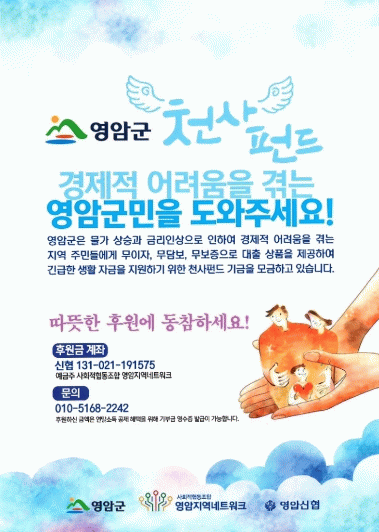 천사펀드는 지역사회의 십시일반을 기금으로 적립, 긴급 지원이 필요한 영암군민에게 생활 안정 자금을 무이자·무보증·무담보로 대출해 주는 영암형 사회적 금융이다.