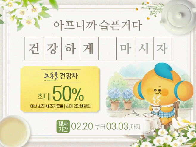 이번 기획전은 큰 일교차와 미세먼지 등으로 건강 관리가 중요한 시기를 맞아, 누구나 일상에서 간편하게 섭취할 수 있는 건강 음료를 중심으로 마련됐다.