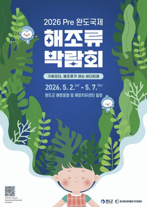 ‘2026 Pre 완도국제해조류박람회’는 ‘기후 리더, 해조류가 여는 바다의 미래’라는 주제로 5월 2일부터 7일까지 완도 해변공원과 완도해양치유센터 일원에서 개최된다.