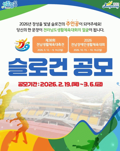 한편, ‘제38회 전라남도생활체육대축전’은 오는 9월 12일부터 14일까지 3일간, ‘2026 전라남도장애인생활체육대회’는 10월 15일부터 16일까지 2일간 장성군 공설운동장 ‘옐로우시티스타디움’ 일원에서 열린다.