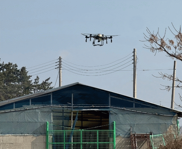 이번 드론 방제는 5대를 긴급 동원하여 양돈농장 88호에 일제적으로 투입, 인력이나 기존 소독 장비로 접근이 어려운 축사 지붕과 고지대 등 방역 사각지대를 효과적으로 관리하기 위해 추진됐다.
