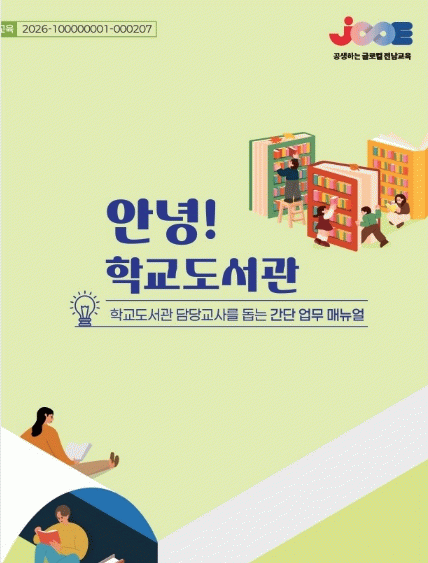 이에 전라남도교육청은 누구든 손쉽게 활용할 수 있도록 ‘2026. 학교도서관 운영 매뉴얼’을 24일 개최하는 ‘순회사서 정책 연찬회’를 통해 지역청 별로 배부한 데 이어, 3월 첫 주에는 모든 학교에 배포할 계획이다.
