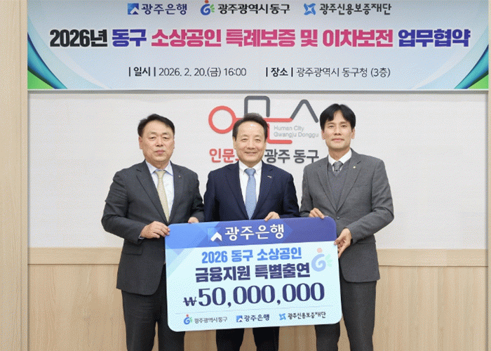 한편, 광주은행은 동구 소상공인 지원을 위해 지난 2019년부터 총 3억 8천만 원을 특별출연해 총 105억 원 규모의 특례보증을 지원한 바 있다.