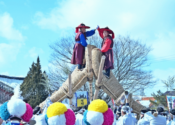 고싸움놀이는 볏짚으로 만든 대형 고를 맞부딪히면서 상대방과 힘을 겨루는 전통 대동놀이로, 풍년과 마을의 안녕, 공동체 정신 함양의 의미를 담고 있다.