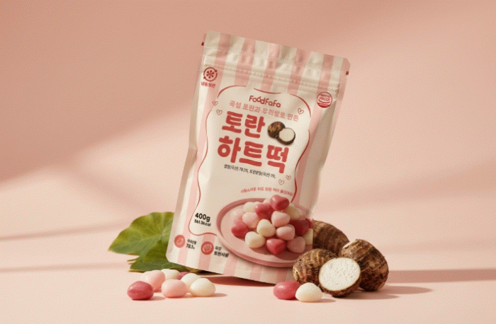 ‘맛다곡성 토란하트떡’은 곡성에서 재배된 토란을 첨가하여 쫄깃한 식감과 담백한 풍미를 살린 것이 특징이다.