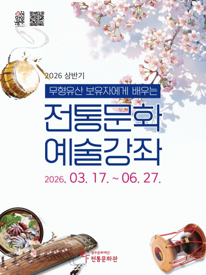 상반기 강좌는 3월 17일부터 6월 27일까지 매주 1회, 총 15주 과정으로 진행된다. 자세한 사항은 전통문화관 누리집에서 확인할 수 있다.