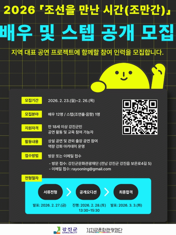 자세한 사항은 강진군문화관광재단및 홈페이지 고시공고란을 통해 확인할 수 있다.