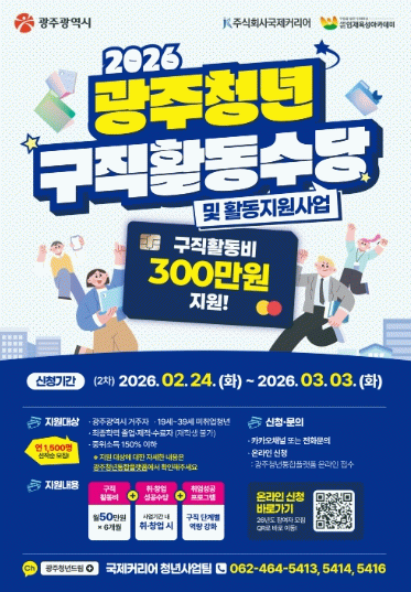 최종 선정자는 3월 중 광주청년통합플랫폼 마이페이지 또는 개별 문자메시지를 통해 발표하며, 4월부터 구직활동수당을 지급한다. 선정자는 온라인 예비교육 이수와 청년 구직활동수당 지급을 위한 클린카드 발급 절차 등을 거쳐야 한다.