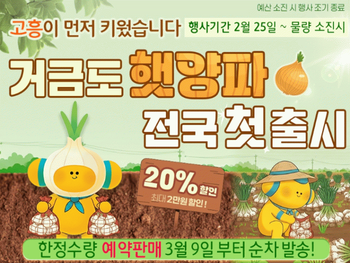 고흥몰 관계자는“거금도 조생종 햇양파는 고흥의 봄을 가장 먼저 알리는 대표 농산물”이라며“산지의 신선함을 그대로 전하고자 예약 판매 방식으로 준비했으며, 한정 수량 20% 할인 혜택을 통해 보다 합리적인 가격에 만나보실 수 있다”고 말했다.