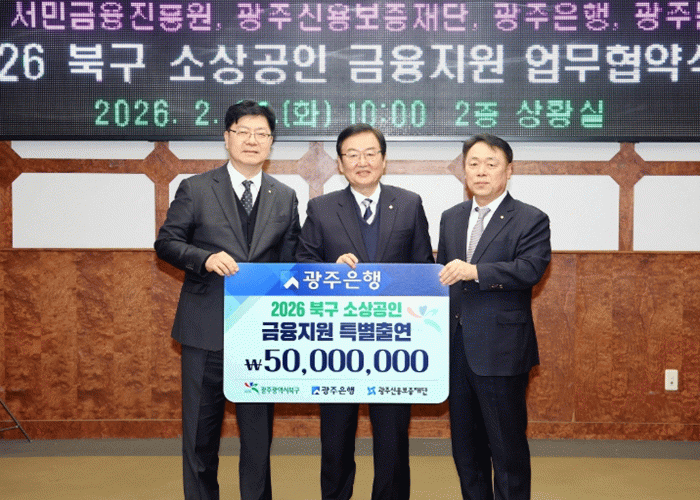한편, 광주은행은 북구 소상공인 지원을 위해 지난 2019년부터 총 3억 3천만 원을 특별출연해 약 91억 원 규모의 특례보증을 지원했으며, 포용금융센터를 거점으로 최근 5년간 1,000여 건의 무료 경영 컨설팅을 제공하는 등 지역 상생 금융 실천에 앞장서고 있다.