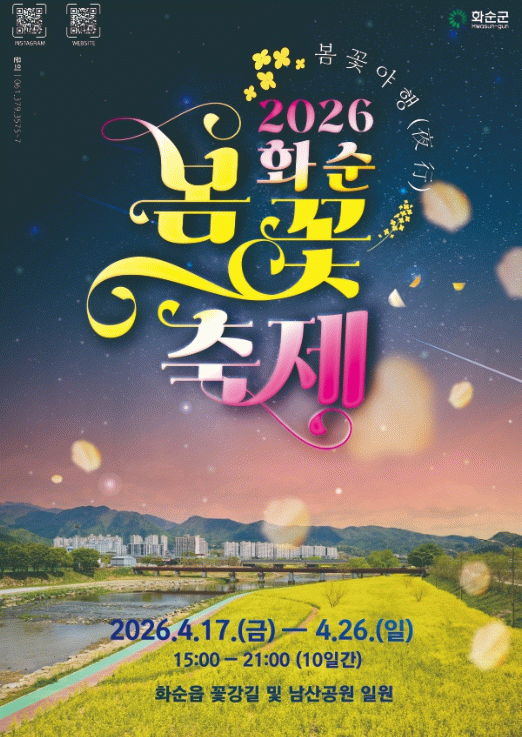 오는 4월 17일부터 26일까지 개최되는 ‘2026 화순 봄꽃 축제’는 봄과 꽃, 빛을 주제로 운영된다. 군은 창의적이고 다양한 즐길 거리를 확대하기 위해 체험형 프로그램을 공개 모집한다.