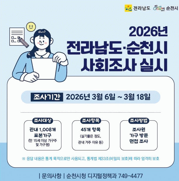 한편, 조사 결과는 8월 말 순천시 홈페이지를 통해 공표될 예정이다.