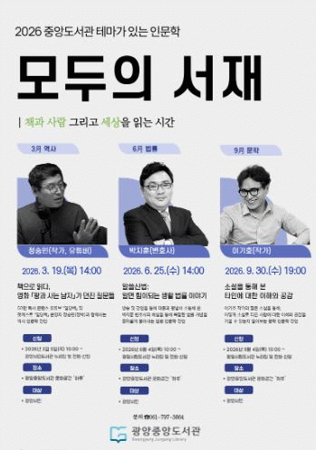광양시 관계자는 “책을 통해 역사와 사회, 사람을 이해하는 인문학적 경험을 시민들과 나누기 위해 이번 강연을 마련했다”며 “앞으로도 시민들이 일상 속에서 자연스럽게 인문학을 접할 수 있도록 다양한 프로그램을 운영하겠다”고 말했다.