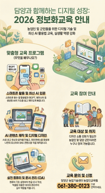 교육 신청과 자세한 일정 문의는 담양군농업기술센터 농업인교육팀으로 하면 된다.