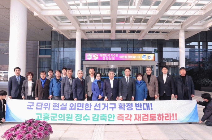 또한 군의회는 이번 감축안이 고흥군의 지리적 여건과 행정 현실을 충분히 반영하지 못한 채 인구 수만을 기준으로 판단한 탁상행정의 결과라고 강하게 비판했다. 넓은 면적과 도서·해안 지역이 포함된 고흥군의 특성을 고려하지 않은 일률적인 기준 적용은 주민 대표성을 약화시키고 지역 현안 해결에도 부정적인 영향을 미칠 수 있는 잘못된 결정이라는 지적이다.