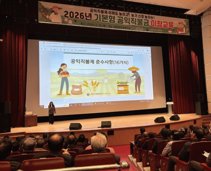 이번 교육은 공익직불제 제도에 대한 이해도를 높이고 마을 단위 안내 체계를 강화하기 위해 마련됐으며, 기본형 공익직불제 신청 요건과 준수사항, 부정수급 방지 등을 안내했다.