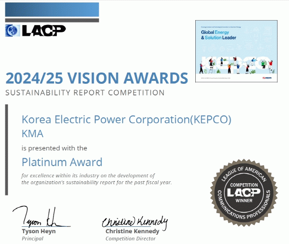 김동철 사장은 “지난 S&P 글로벌 Sustainability Yearbook Member 선정에 이은 LACP 비전어워드 대상 수상을 통해 한전의 높은 ESG 경영 수준과 정보공개 투명성을 글로벌 무대에서 인정받았다”며, “앞으로도 국내 에너지 대표 공기업으로서 글로벌 기준에 부합하는 ESG 경영을 구현하고 투명한 정보공개와 대내외 이해관계자 소통을 강화해 나가겠다”고 강조했다.