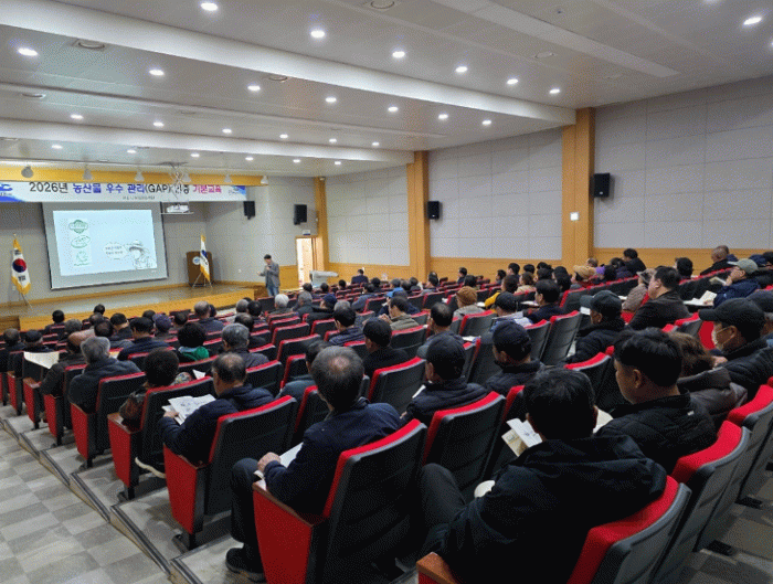 이번 교육에는 농산물우수관리(GAP) 인증 갱신이 필요한 농가 70명과 신규 인증을 희망하는 농가 44명 등 총 120명의 농업인이 참석해 안전 먹거리 생산에 대한 높은 관심을 보였다.