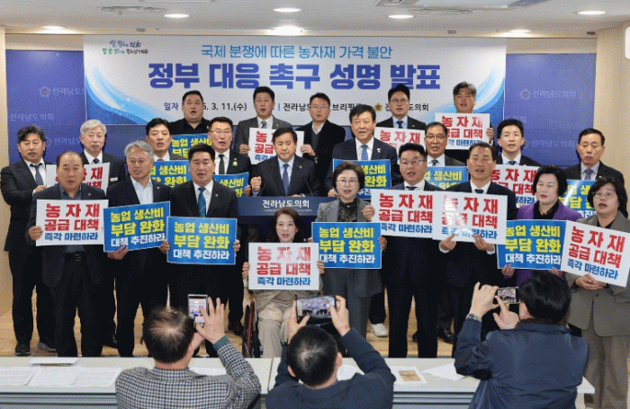 아울러 "정부가 관련 지원책과 제도 정비에 나서고 있지만 현장 체감형 대응은 여전히 부족하다"고 지적하며, "주요 농자재 수급 안정과 농업경영비 부담 완화 대책을 보다 구체화해야 한다"고 전남도의회 의원들과 함께 촉구했다.