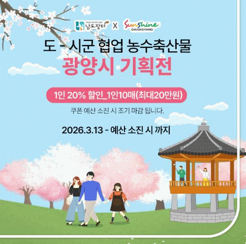 광양시 관계자는 “광양의 농·특산물을 합리적인 가격에 구매할 수 있도록 기획전을 마련했다”며 “매화축제와 함께 광양의 농·특산물을 즐기며 따뜻한 봄을 맞이하시길 바란다”고 말했다.