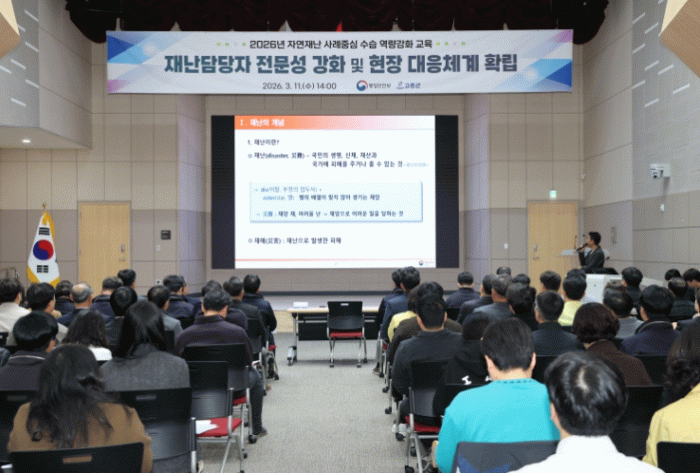 이번 교육은 행정안전부 주관 ‘찾아가는 맞춤형 자연재난 수습 교육’의 일환으로 마련됐으며, 실단과소장 및 읍·면장, 재난업무 담당자 등 100여 명이 참석한 가운데 사례 중심의 참여형 교육으로 진행됐다.
