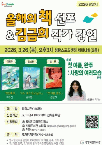 자세한 사항은 광양시립도서관 누리집 문화행사 안내란에서 확인하면 된다.