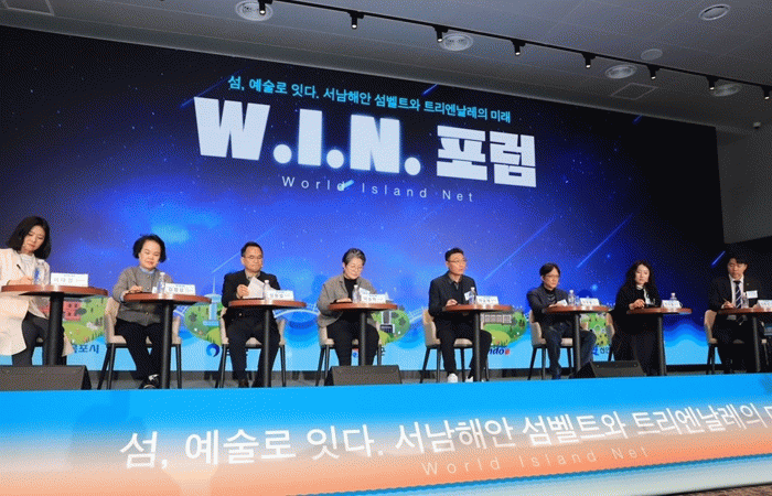 ‘섬, 예술로 잇다: 서남해안 섬벨트와 트리엔날레의 미래’를 주제로 진행된 이번 포럼에는 국제예술제 관계자, 섬 전문가, 문화예술계 인사 등이 참석해 서남해안 섬 지역의 성장 가능성과 2030 W.I.N.(World Island Net) 트리엔날레 추진 방향을 깊이 있게 논의했다.