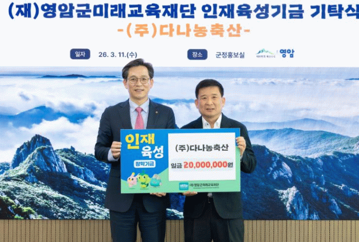 김 대표는 영암군 서호면 출신 기업가로, 이번 기부를 포함해 재단에 5,000만원의 누적 기부금을 달성했다.