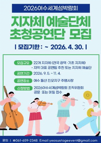 조직위 김종기 사무총장은 “전국 지자체 예술단체가 참여하는 이번 초청공연은 섬박람회의 문화 프로그램을 더욱 풍성하게 만들고, 지역 간 문화교류와 상생 협력의 계기가 될 것”이라며 “많은 지자체의 적극적인 참여를 기대한다”고 말했다.