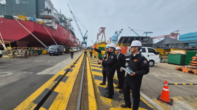 이날 최민철 본부장은 HD현대삼호 경영진과 함께 LNG 운반선 건조 현장 등 주요 제조공정을 꼼꼼히 시찰했다. 특히 용접 및 절단 등 화기 작업이 잦은 조선소의 구조적 취약점을 지적하며, ▲가연성 가스 체류 여부 상시 확인 ▲자위소방대 중심의 신속한 초기 대응 시스템 가동 등 현장 안전 수칙의 철저한 이행을 강력히 당부했다.