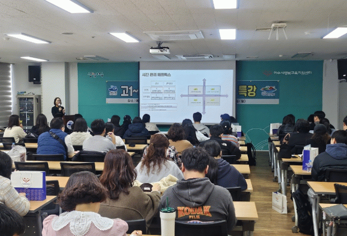 행사에 참여한 학생은 “중요한 내신 향상을 위해 ‘시간 관리 매트릭스-계획-복습-실천’이 필요하다는 조언이 도움이 됐다”며 “오늘을 계기로 더욱 열심히 공부해야겠다는 강한 동기부여가 생겼다”고 소감을 밝혔다.