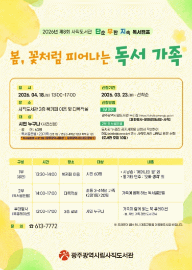 조인숙 사직도서관 관리장은 “가족이 함께 책을 읽고 퀴즈를 풀며 자연스럽게 독서의 즐거움을 경험할 수 있는 행사를 준비했다”며 “많은 시민의 관심과 참여를 바란다”고 말했다.