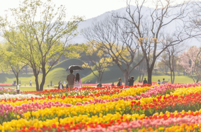 국가정원 전역에 150만 송이의 튤립이 일제히 피어나며 장관을 이루고 있다.