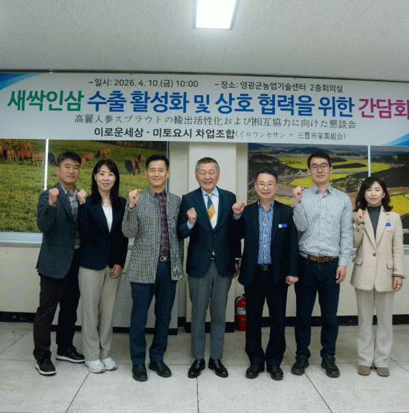 영광군 농업기술센터 정재욱 소장은 “이번 협약을 통해 영광에서 생산된 새싹인삼이 일본 수출에 활성화될 것으로 기대된다며”며, “일본 시장에서 새싹인삼이 인정받을 수 있도록 농업기술 지원을 지속적으로 강화하겠다”고 밝혔다.