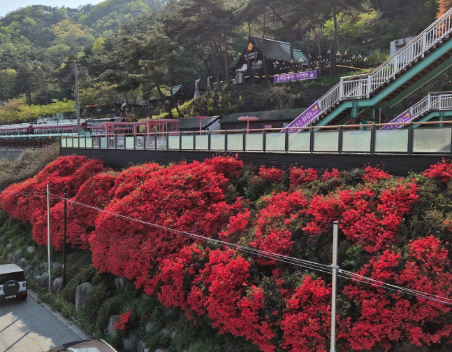 특히 옛 철길을 따라 이어지는 철쭉길은 병풍처럼 펼쳐진 꽃 풍경이 인상적이다.