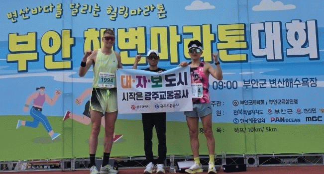 특히 이 대리는 이번 부안해변마라톤 시상대에서 “대중교통·자전거·도보(대·자·보) 도시 시작은 광주교통공사”라는 문구가 적힌 플랜카드를 들고 올라 시민들의 눈길을 끌었다. 개인의 성취를 넘어 소속 기관과 지역 정책을 알리기 위한 자발적인 퍼포먼스였다.